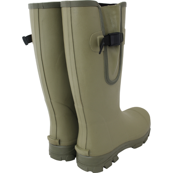 The Jack Pyke Ashcombe Gusset Wellington boot combines classic high wellie styling with practical field performance. The 3mm neoprene lining – originally developed for diving suits – keeps feet warm and comfortable. A high-grip rubber sole ensures stability on muddy ground, while the gusset with buckle adjuster allows fine-tuning the fit around the leg. A removal lug at the heel makes them easy to take off.