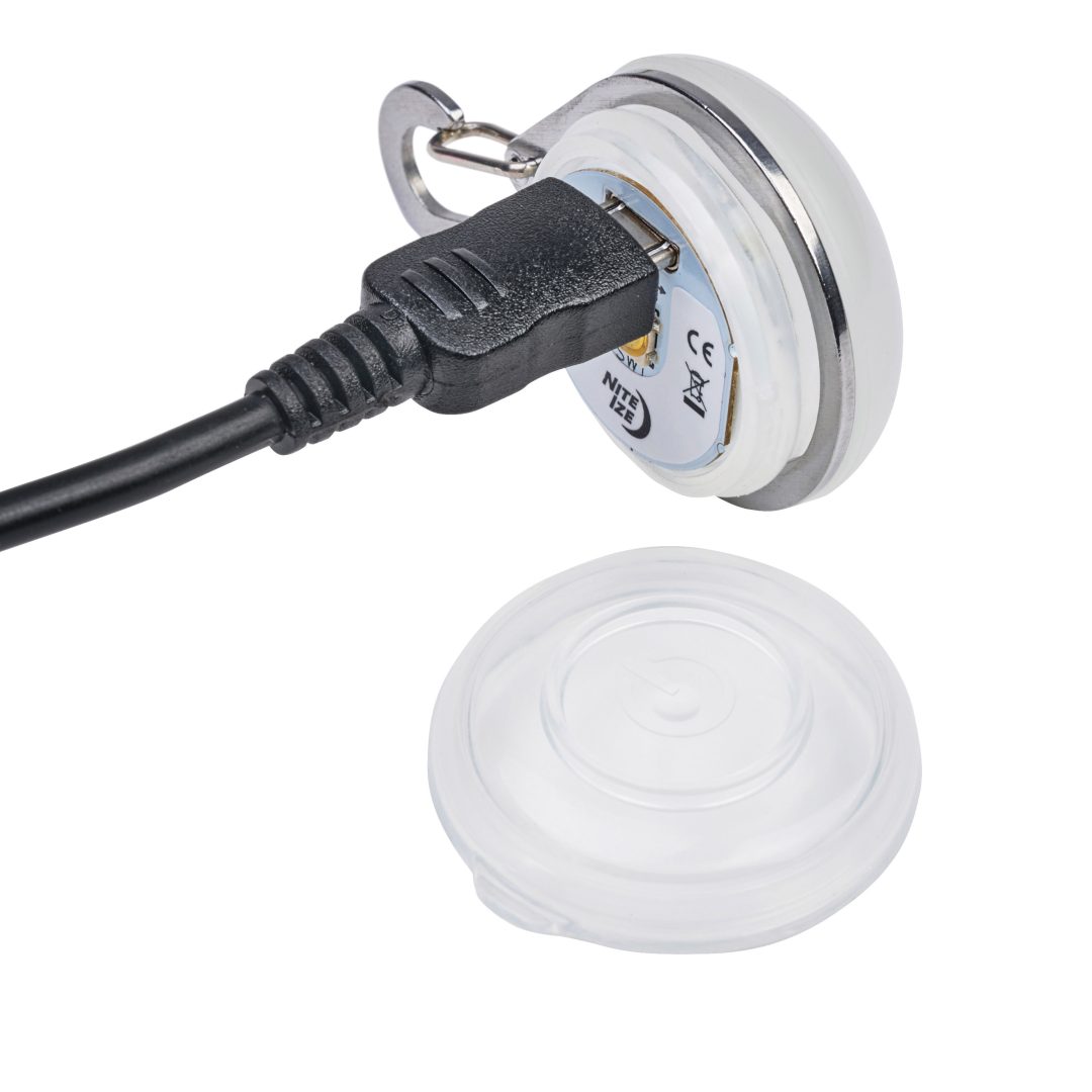 Nite Ize SpotLit – white LED light with black hook. Easy to attach to various locations.