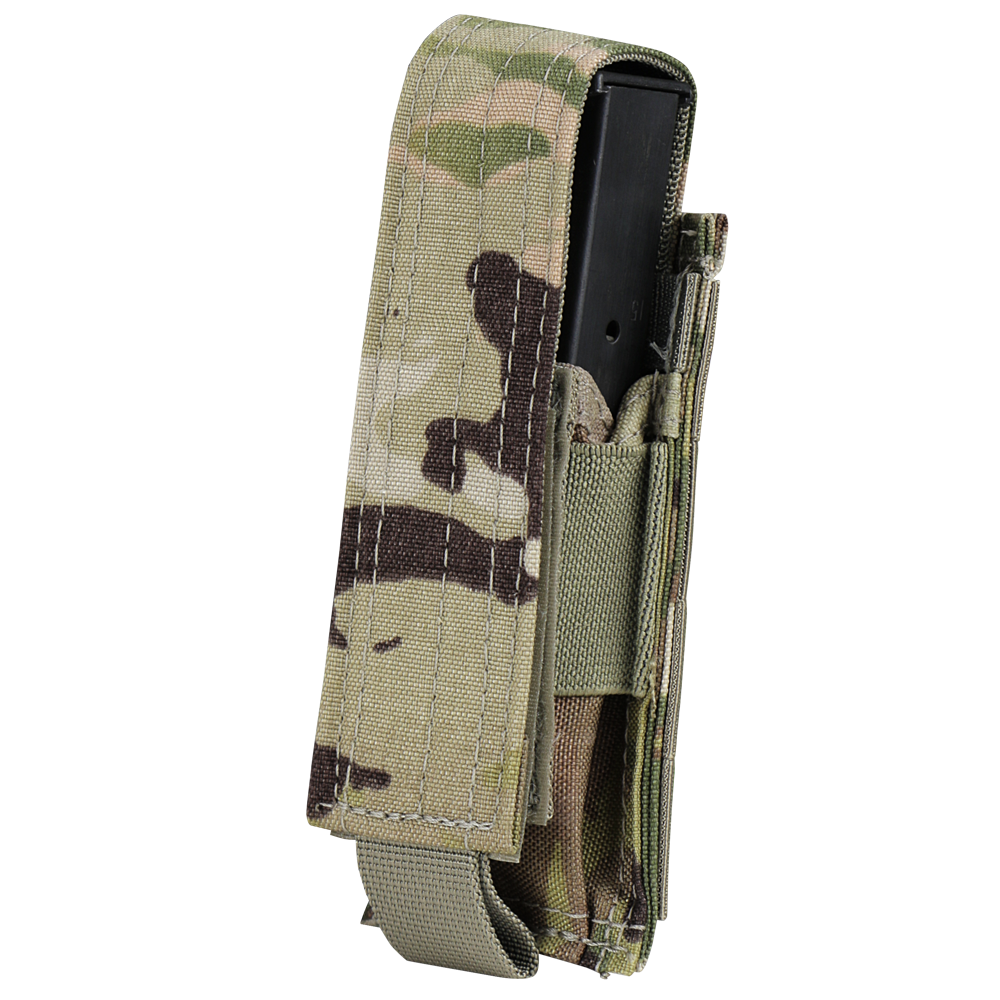 Tactical pouch made from durable nylon. MOLLE-compatible attachment fits most tactical platforms. Compact and functional design keeps equipment organized and quickly accessible.