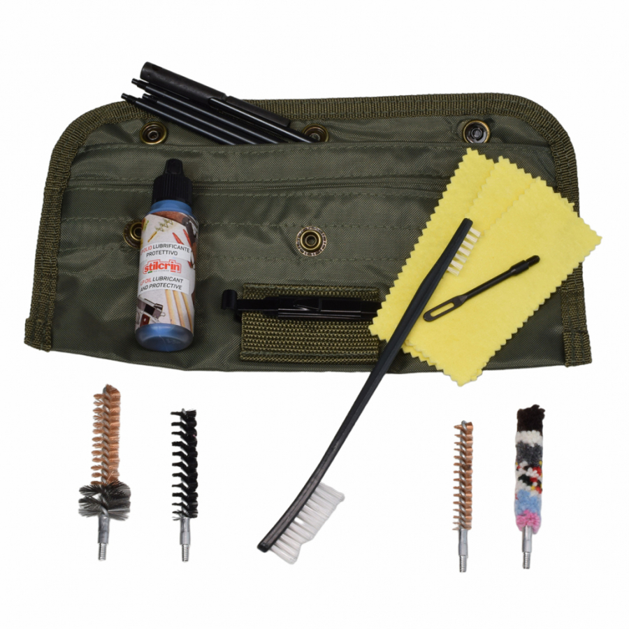 relvapuhastustarvikute militaarkomplekt tekstiiltaskus; kal.