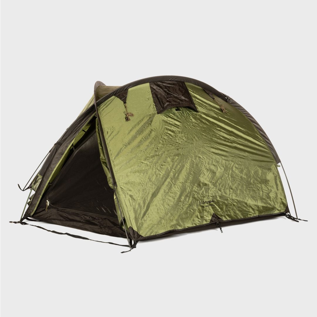 Snugpak tent built to handle harsh weather conditions. Geodetic construction ensures stability in strong winds. Quick setup and compact packed size make it ideal for outdoor activities.